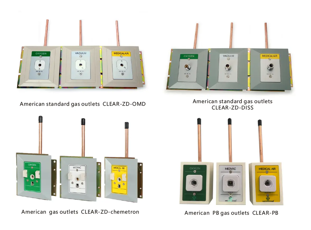 2. Uporabite barvni standard ZDA za identifikacijo plina: Za razlikovanje plinov se uporabljajo kvadratne reže z različnimi koti, da se različni plinski čepi preprečijo. Primerno je za ameriške vtiče Ohmeda